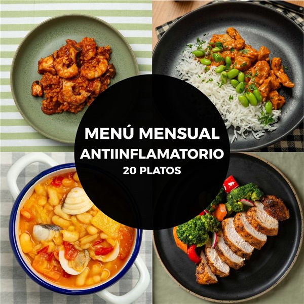 Nuestro menú mensual antiinflamatorio de 20 platos contiene(haz clic sobre el nombre del plato en la tabla inferior para ver la información del plato):